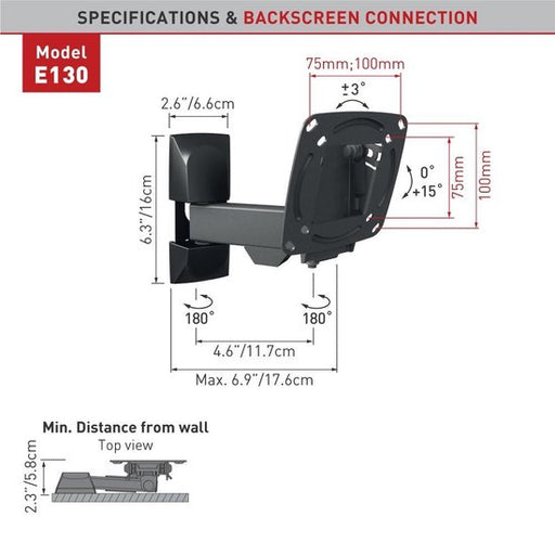 Afficher tous les détailsCe support mural Barkan pour téléviseurs et moniteurs convient aux écrans de dimensions suivantes : 13 - 29 pouces / 33 - 74 cm et supporte un poid...