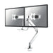Neomounts NM-D775DX blanc est un support de bureau à vérin à gaz avec barre transversale et levier pour écrans plats jusqu'à 32 pouces (81 cm).